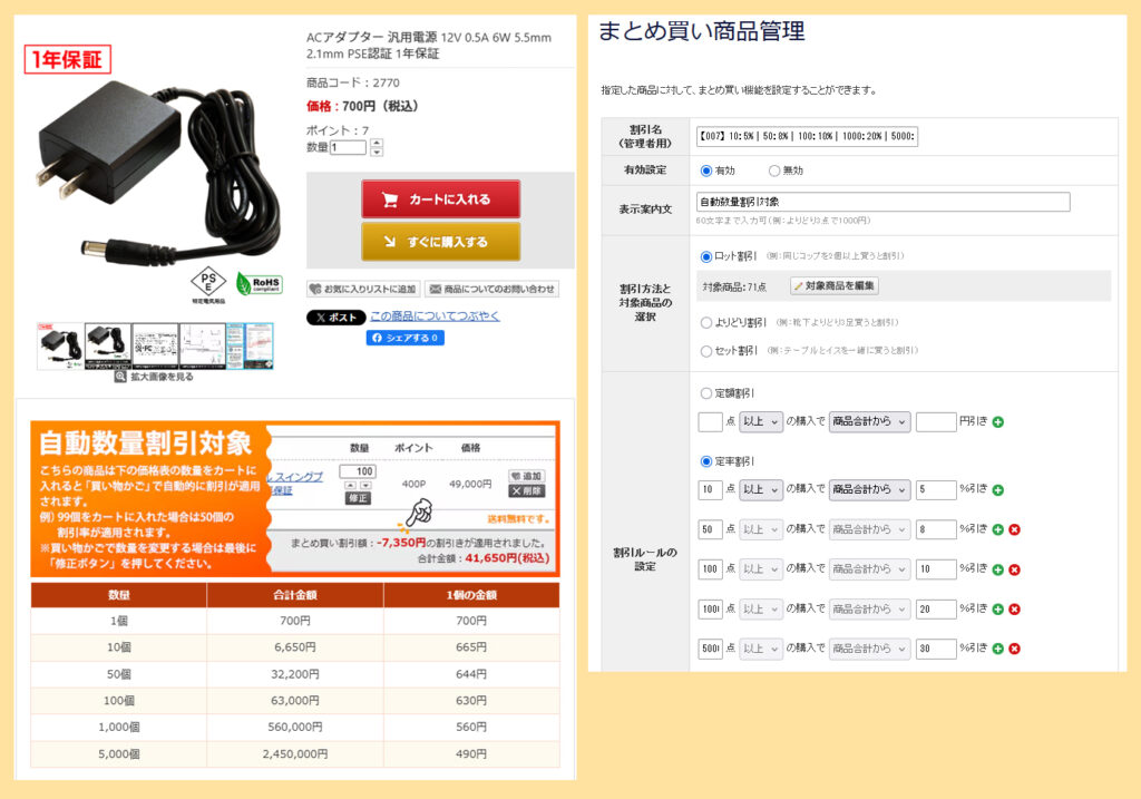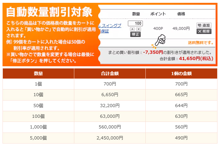 ダイレクトショップでは自動で数量割引対応の商品を増やしております